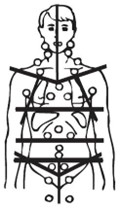 I henhold til GHSG’s definitioner: (B) a) Stor mediastinal tumor (>1/3 af thorax’ indvendige tværmål på Th5/Th6 niveau) b) Extranodal sygdom c) SR ≥ 50 uden B-symptomer eller ≥ 30 med B-symptomer d) ≥ 3 involverede områder (se figur til venstre og bilag 2) Early favourable: Stadium I-II uden risikofaktorer Early unfavourable: Stadium I eller IIA med ≥ 1 risikofaktorer, eller stadium IIB med c) eller d) men uden a) og b) |